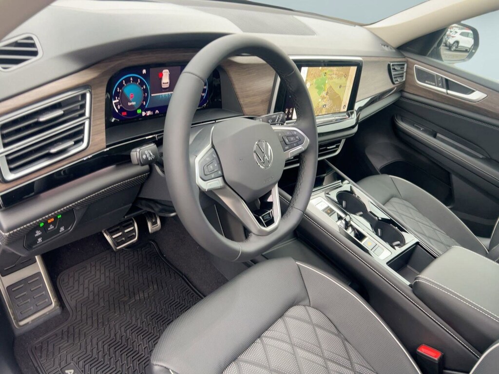 The Atlas has an infotainment system that is easy to use and intuitive, and it allows for swiping and pinch zooming. Apple Car Play is awesome! Surprisingly, some manufacturers have not integrated this feature at this time. The digital instrument panel has a very nice, modern look, and it offers 5 or 6 different views. One of the really cool things about the Atlas- you can display the nav map in the middle of the instrument panel. Additionally, you can make the map bigger and the gauges smaller, which allows you to see more map detail- a really nice option. The car even has an altimeter, which is really cool to me (I’m a pilot by trade). Not so much for my wife…
