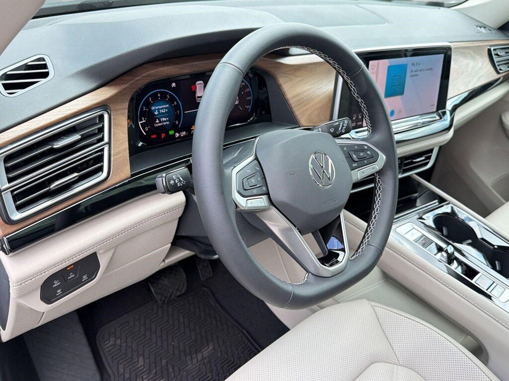 The Atlas has an infotainment system that is easy to use and intuitive, and it allows for swiping and pinch zooming. Apple Car Play is awesome! Surprisingly, some manufacturers have not integrated this feature at this time. The digital instrument panel has a very nice, modern look, and it offers 5 or 6 different views. One of the really cool things about the Atlas- you can display the nav map in the middle of the instrument panel. Additionally, you can make the map bigger and the gauges smaller, which allows you to see more map detail- a really nice option. The car even has an altimeter, which is really cool to me (I’m a pilot by trade). Not so much for my wife…
