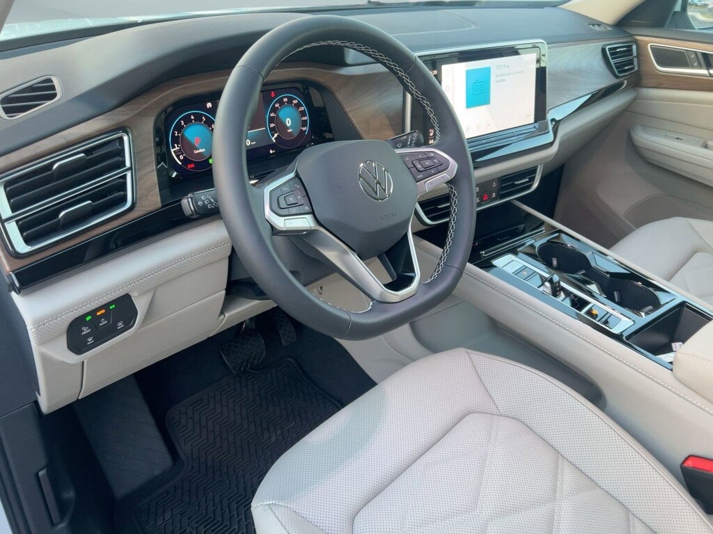 The Atlas has an infotainment system that is easy to use and intuitive, and it allows for swiping and pinch zooming. Apple Car Play is awesome! Surprisingly, some manufacturers have not integrated this feature at this time. The digital instrument panel has a very nice, modern look, and it offers 5 or 6 different views. One of the really cool things about the Atlas- you can display the nav map in the middle of the instrument panel. Additionally, you can make the map bigger and the gauges smaller, which allows you to see more map detail- a really nice option. The car even has an altimeter, which is really cool to me (I’m a pilot by trade). Not so much for my wife…